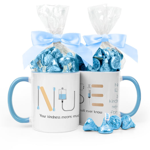 Nurse Appreciation First Aid 11oz Light Blue Mug with 1/2lb Light Blue KISSES