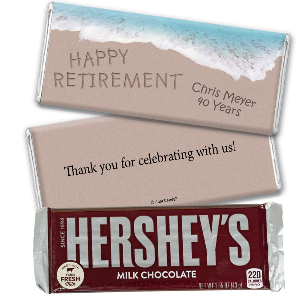 Retirement Personalized Hershey's Milk Chocolate Bar Message in Sand by Sea