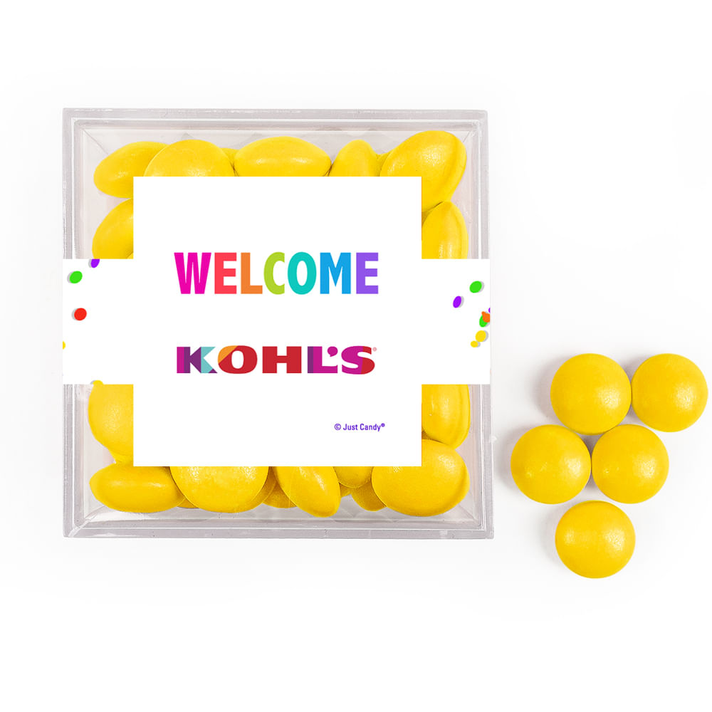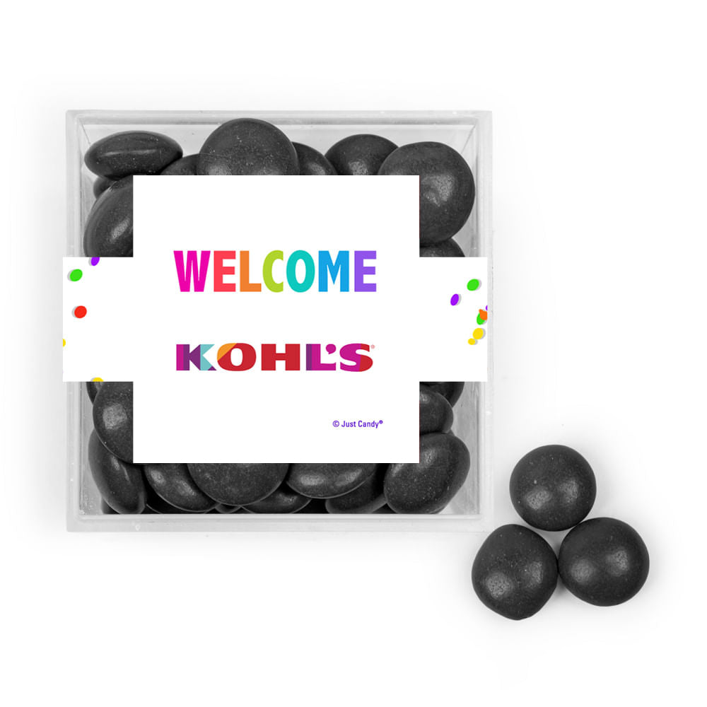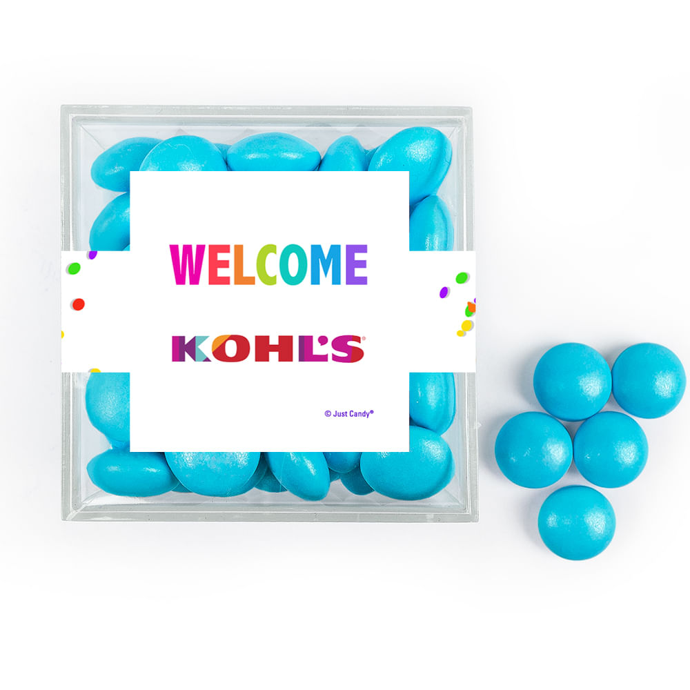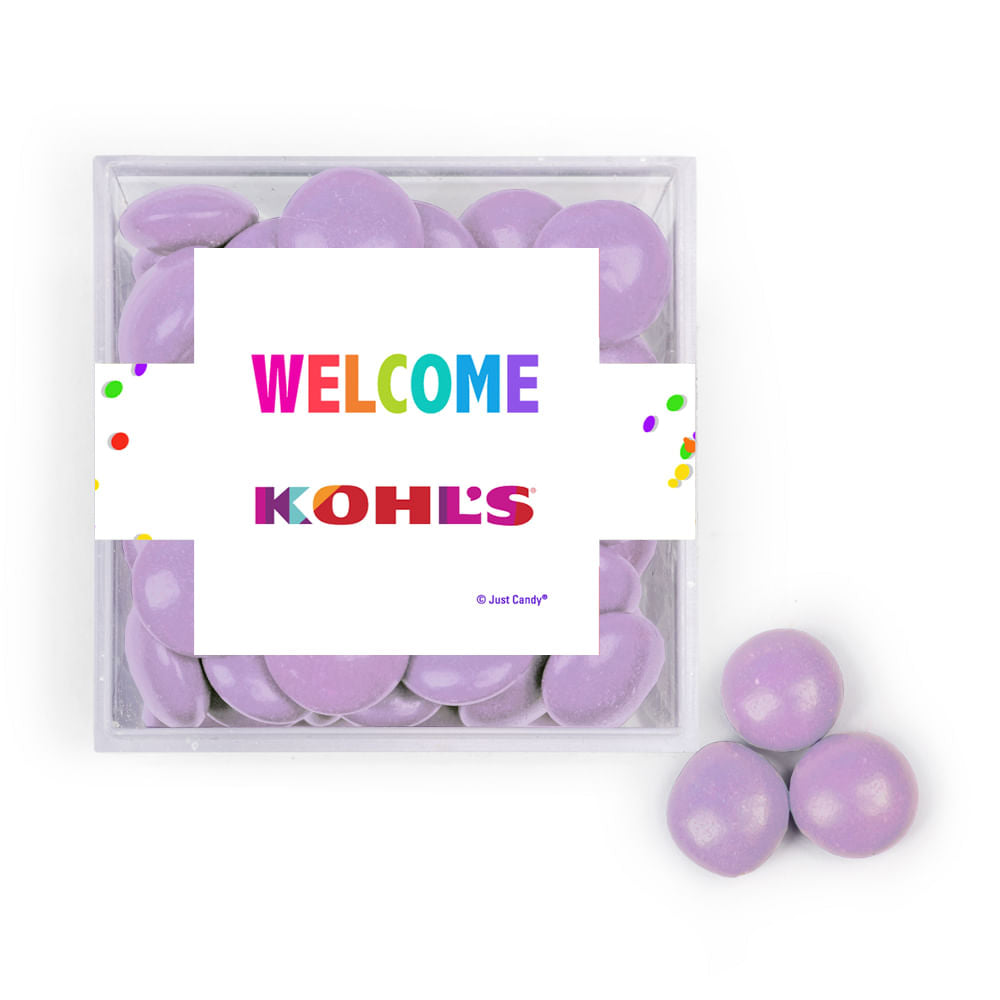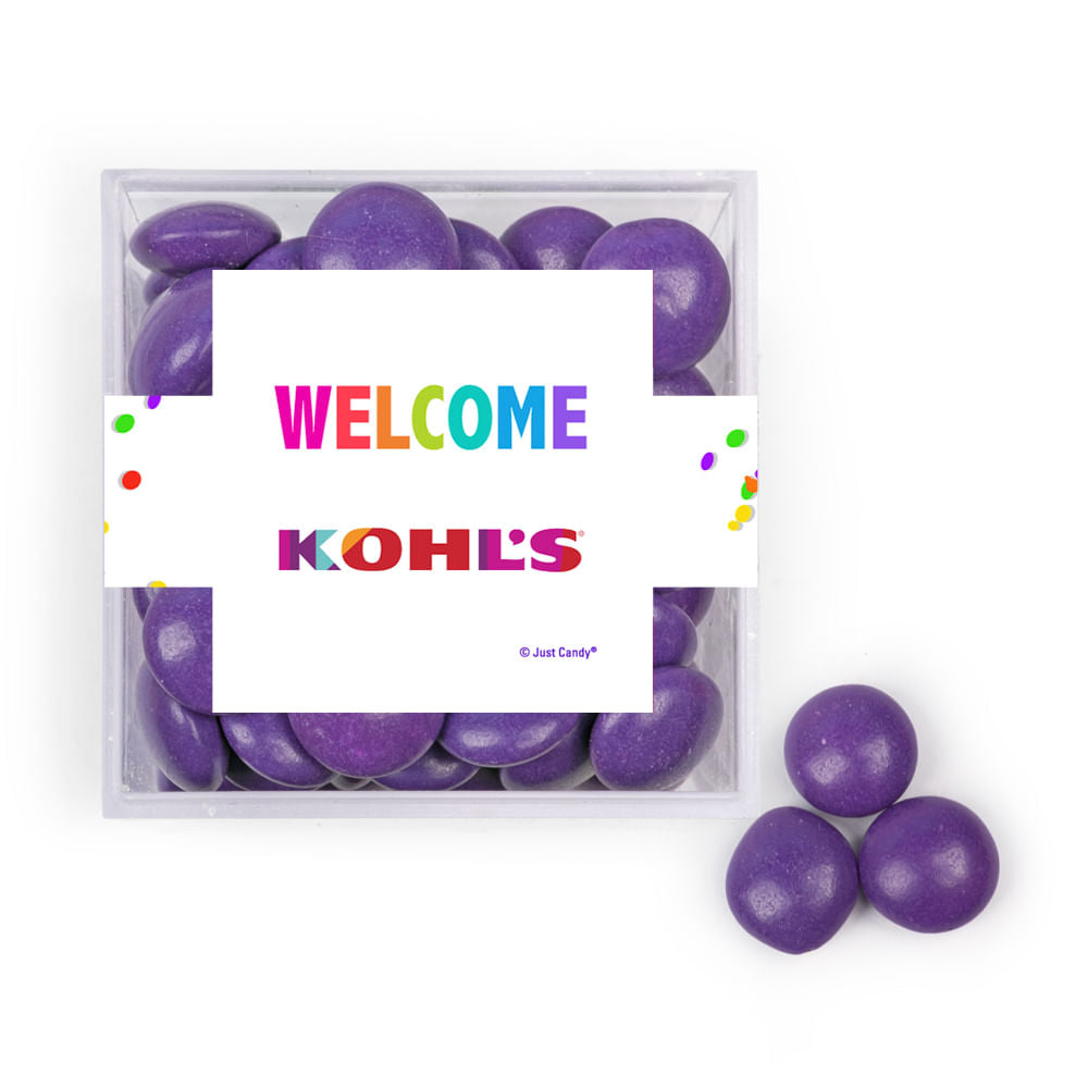 Personalized Welcome JUST CANDY® favor cube with Just Candy Milk Chocolate Minis