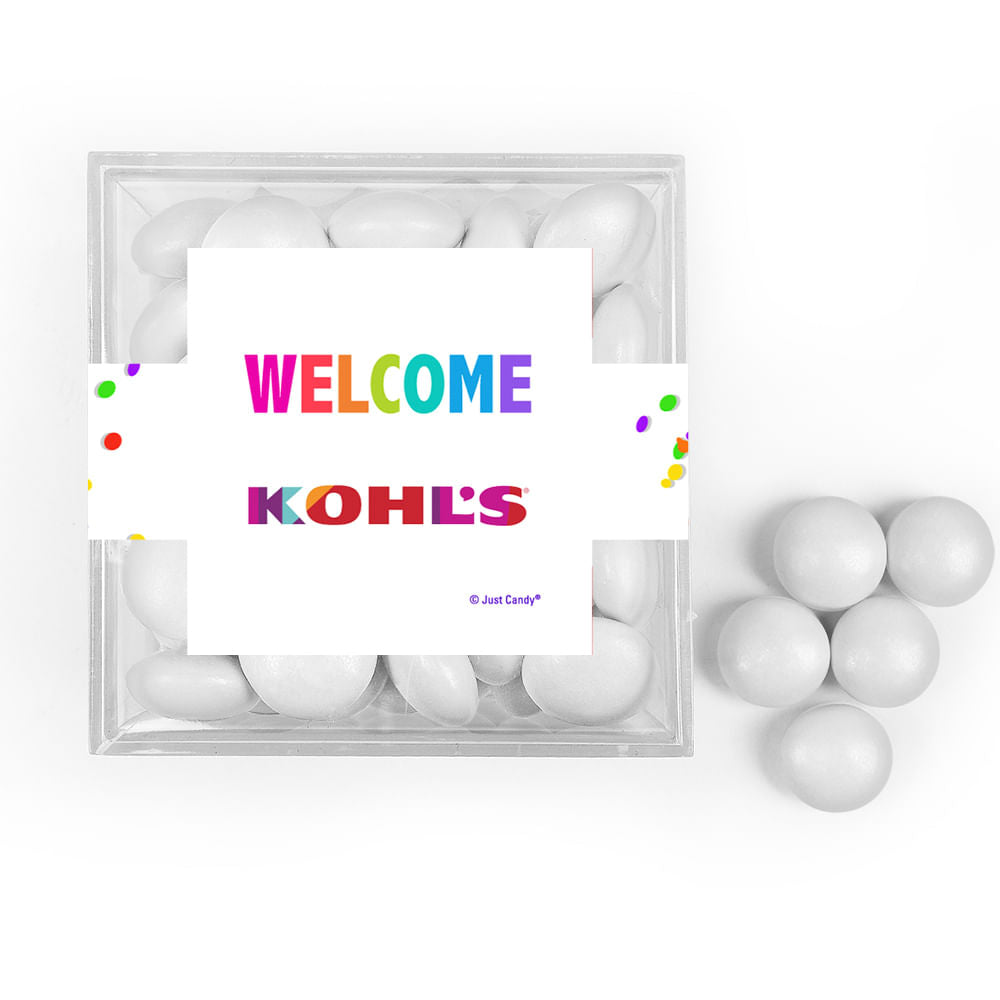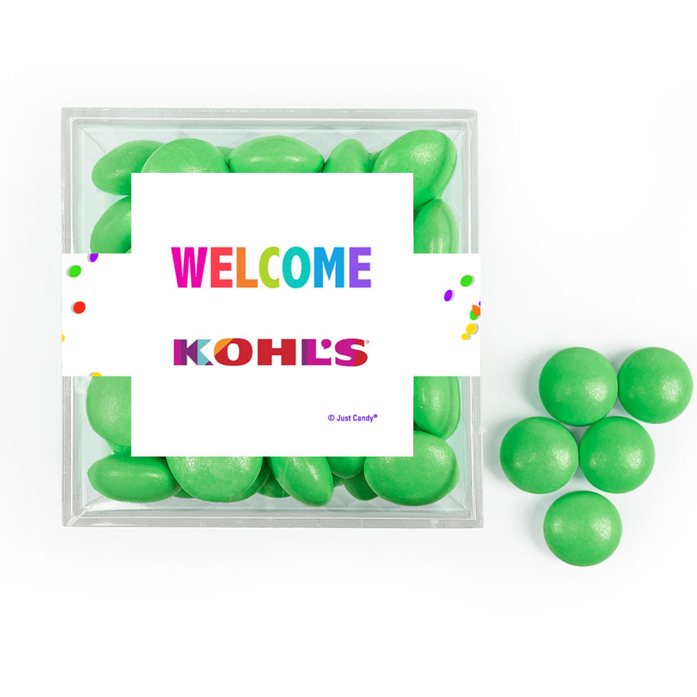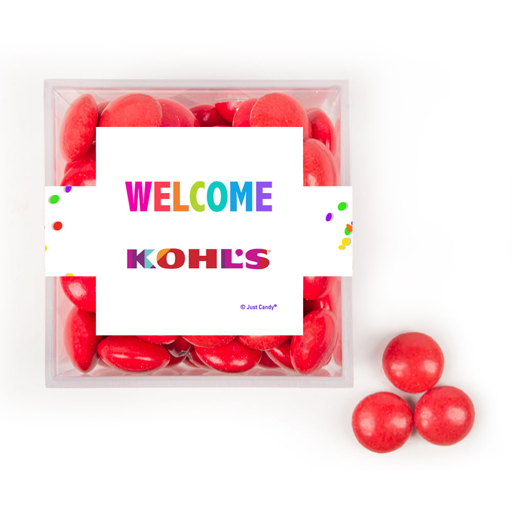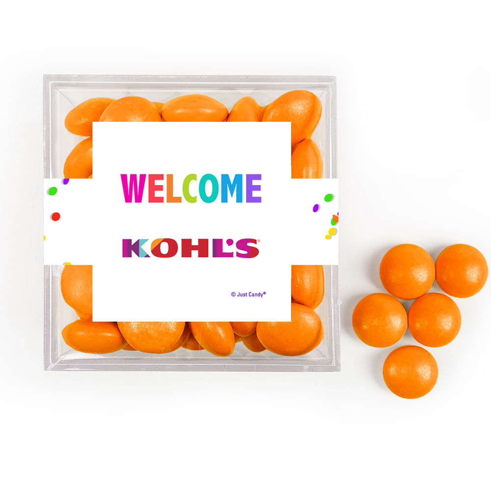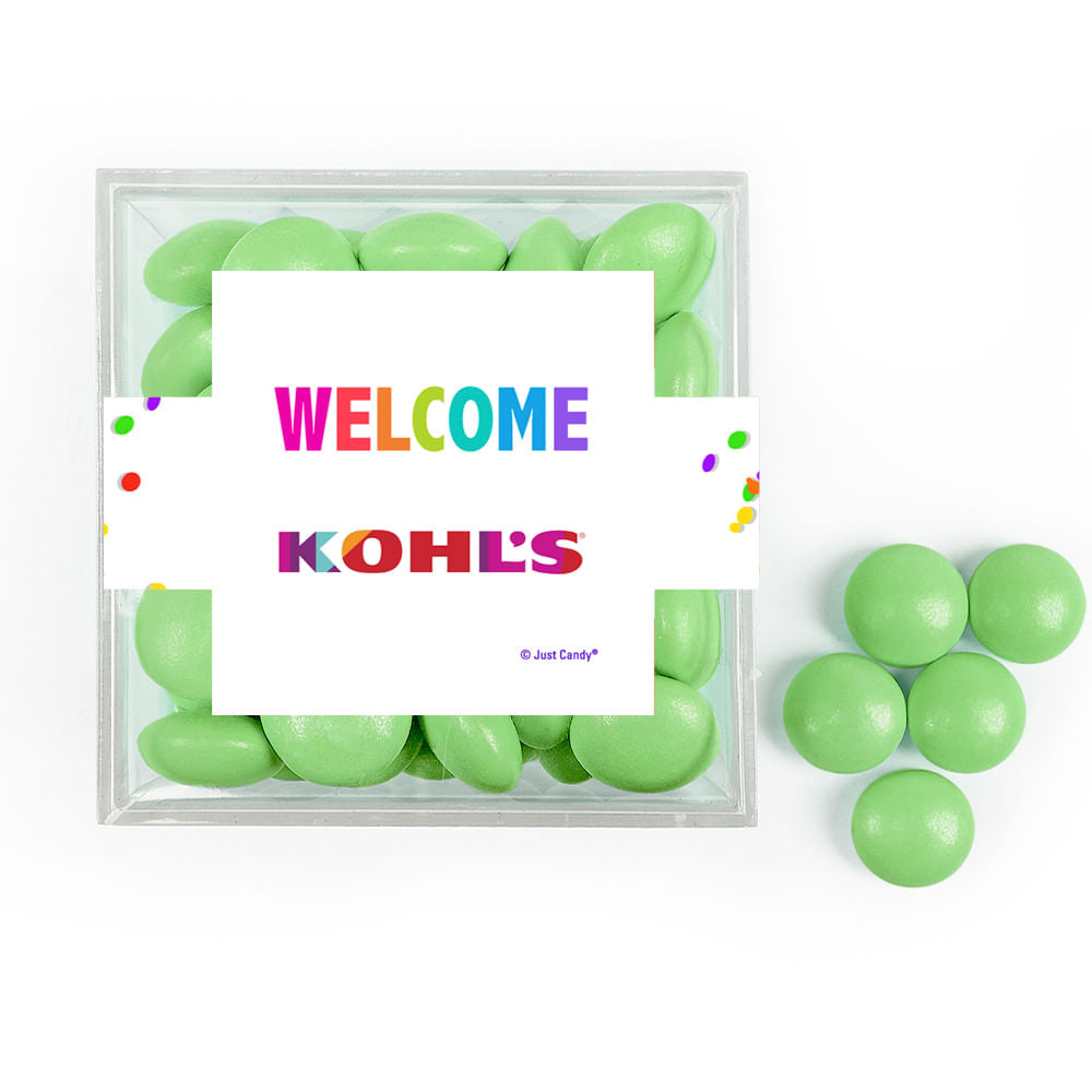 Personalized Welcome JUST CANDY® favor cube with Just Candy Milk Chocolate Minis