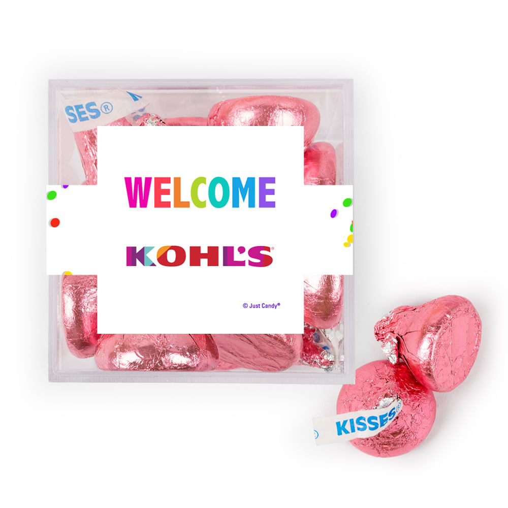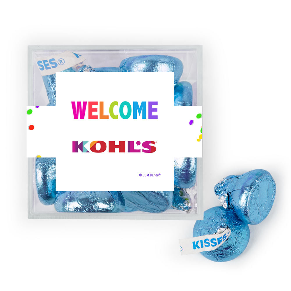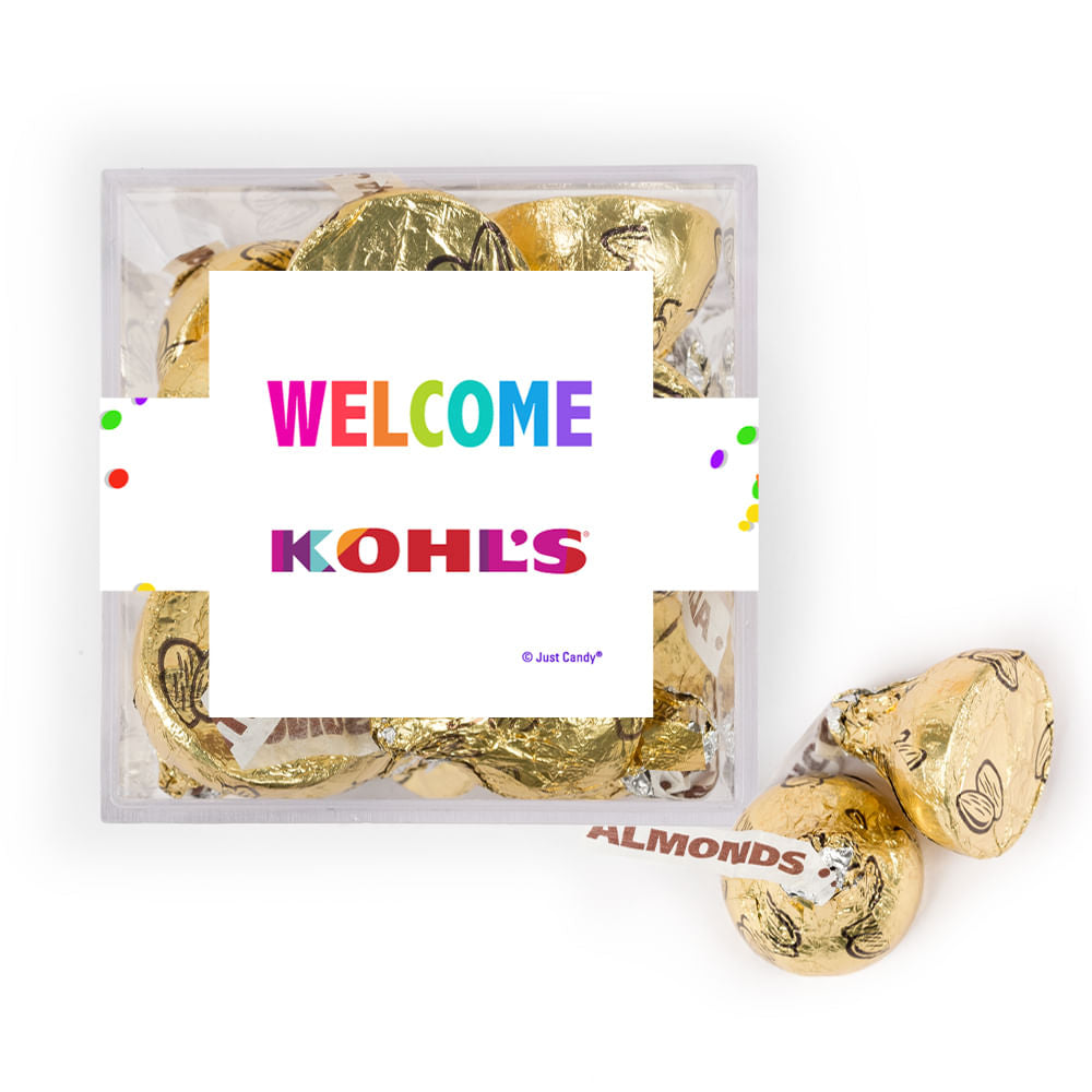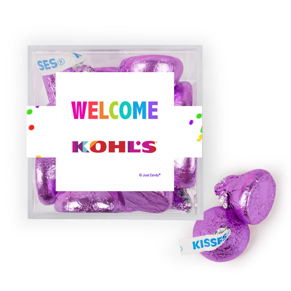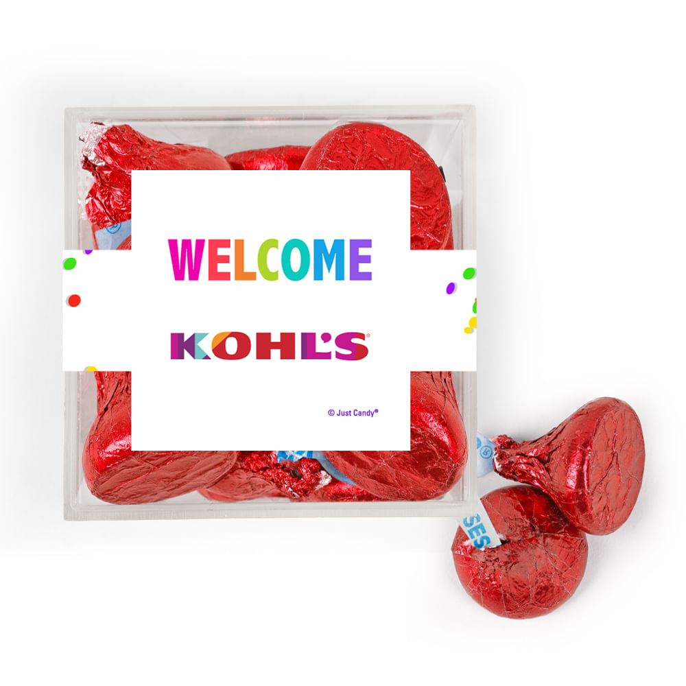 Personalized Welcome JUST CANDY® favor cube with Hershey's Kisses