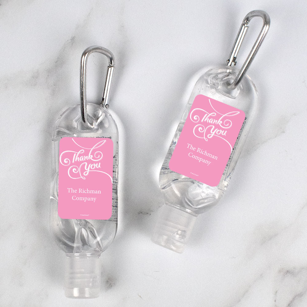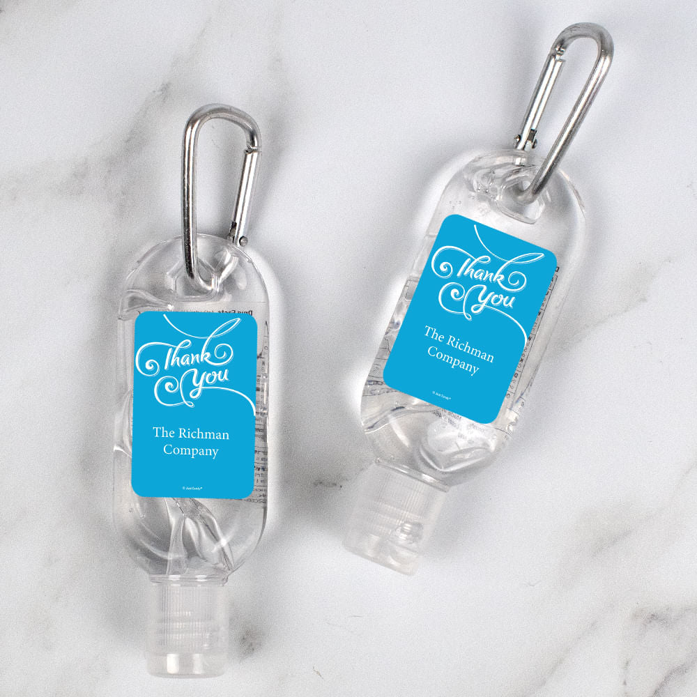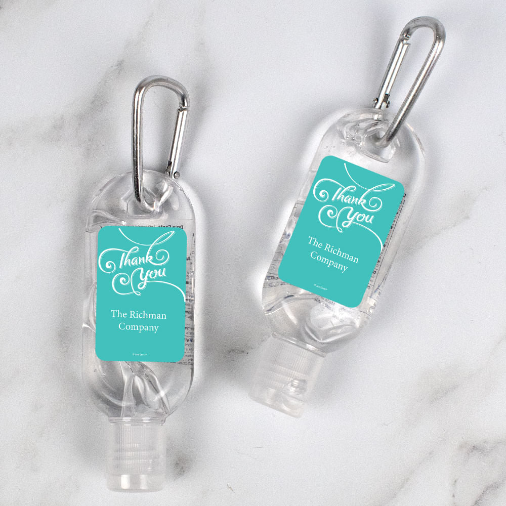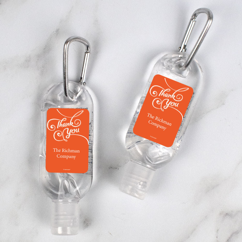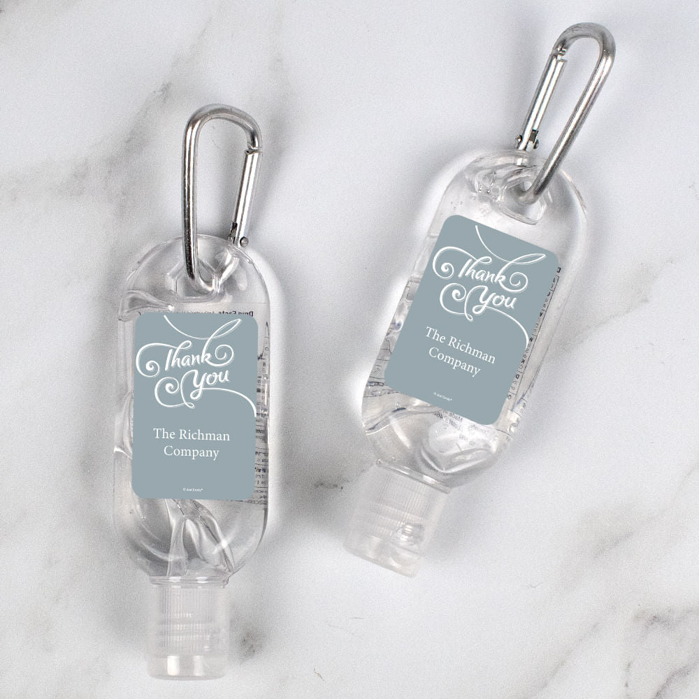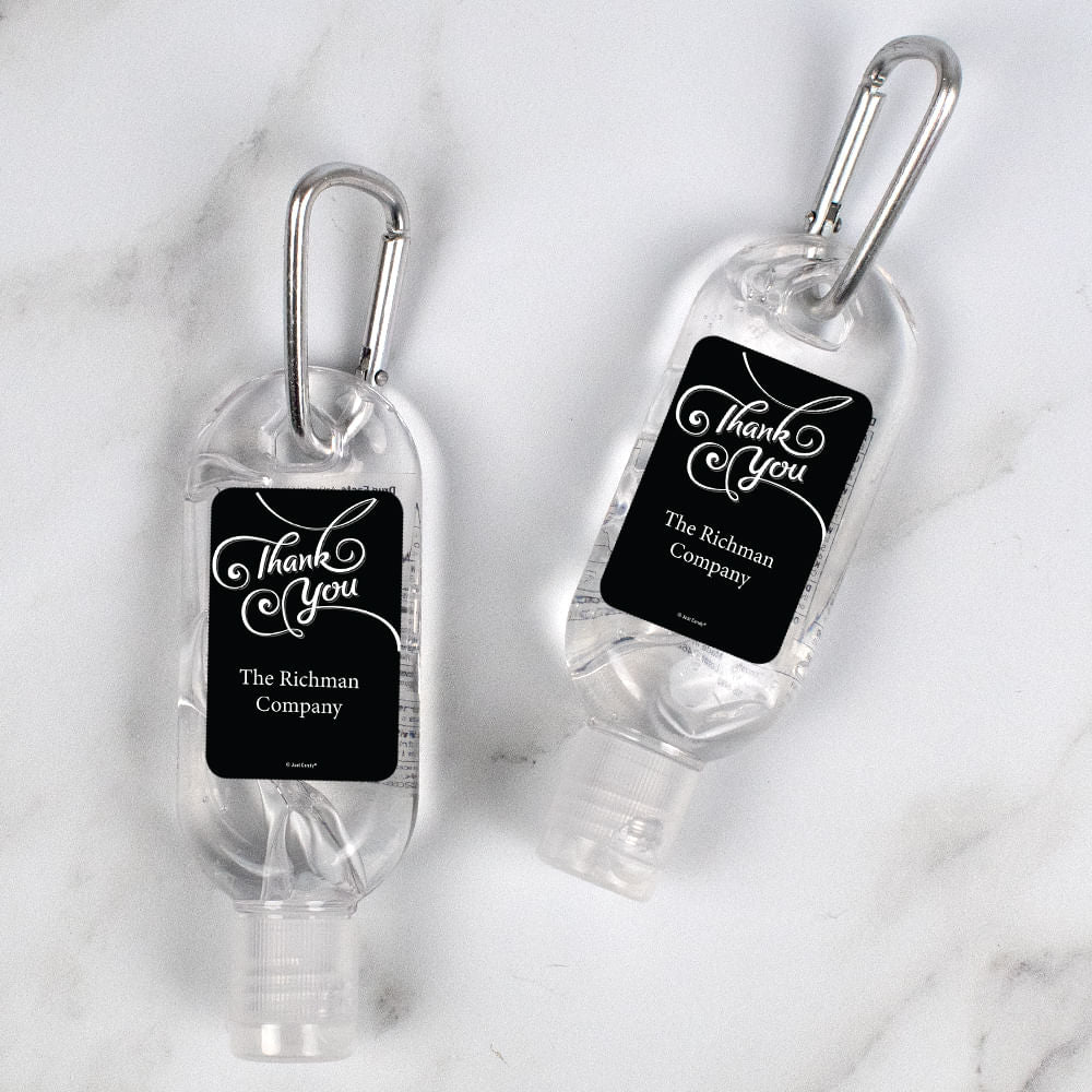 Personalized Hand Sanitizer with Carabiner Thank You Swirls 1 fl. oz bottle