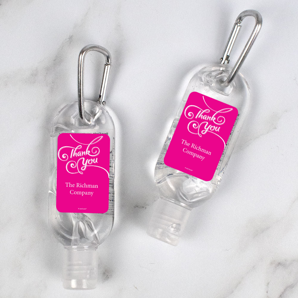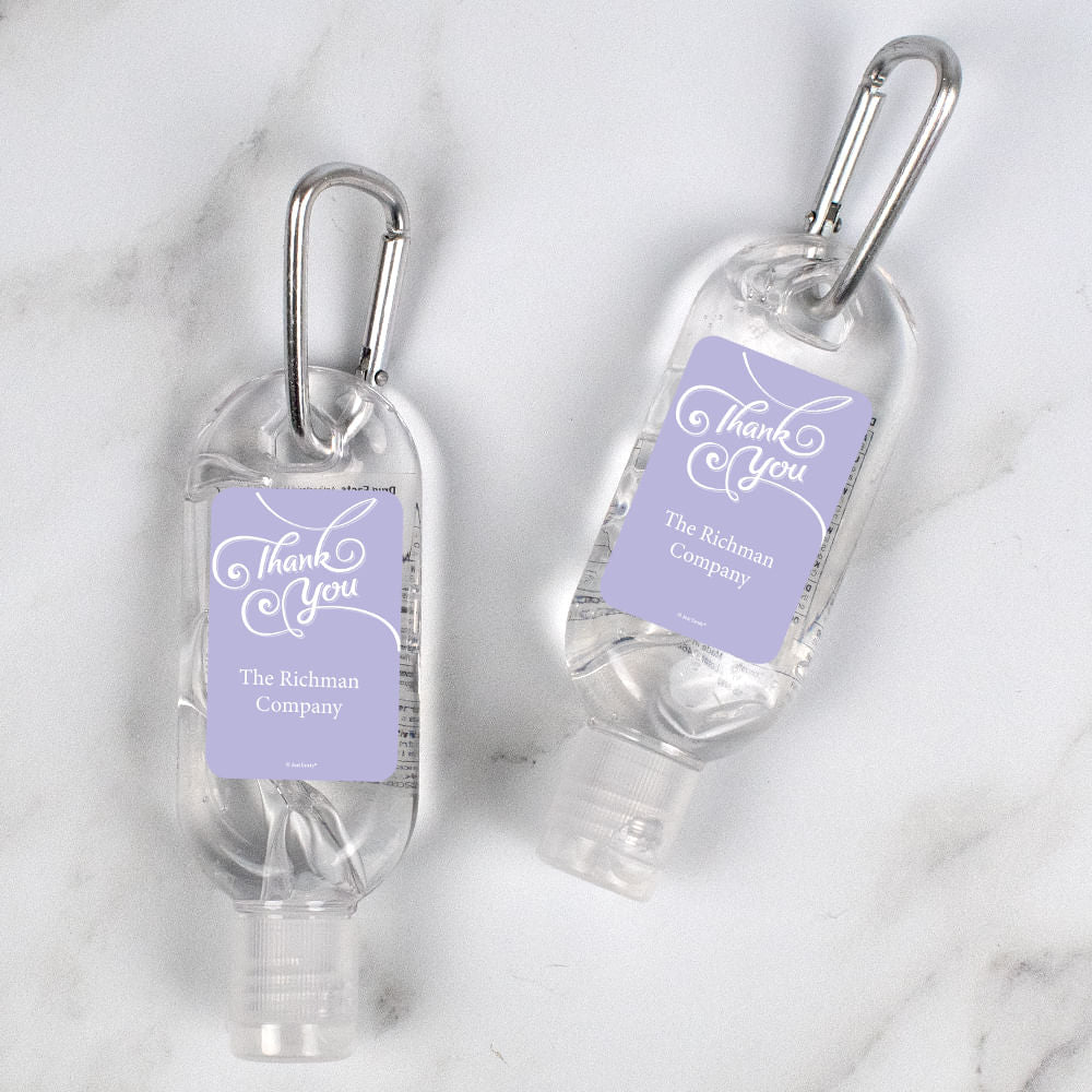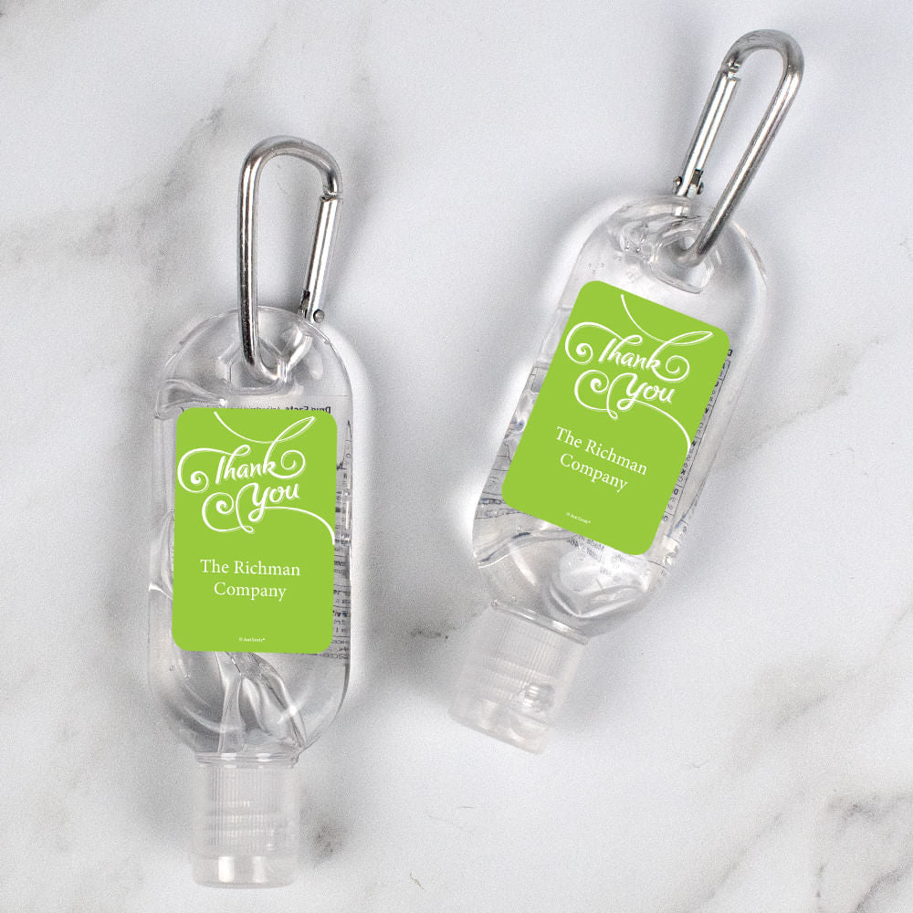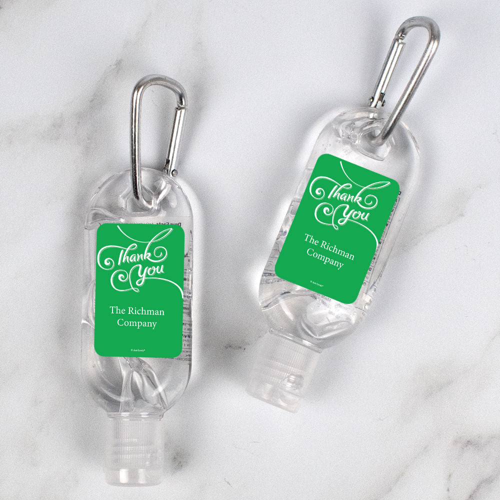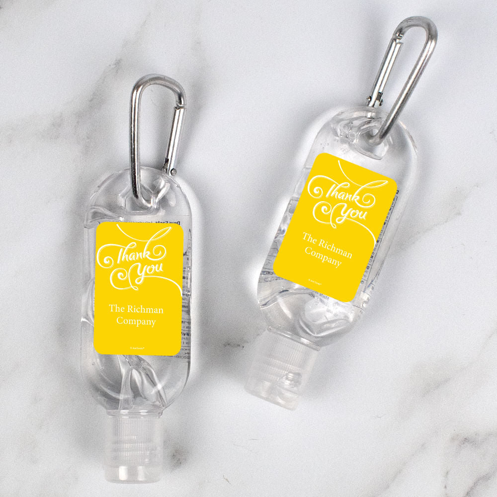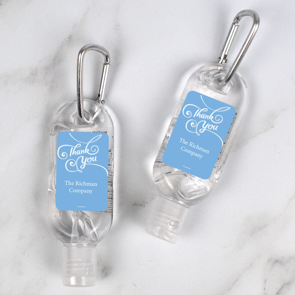 Personalized Hand Sanitizer with Carabiner Thank You Swirls 1 fl. oz bottle