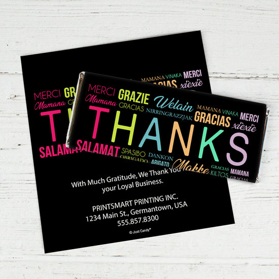 Thank You Personalized Standard Chocolate Bar Wrappers (6 Wrappers Per Sheet)