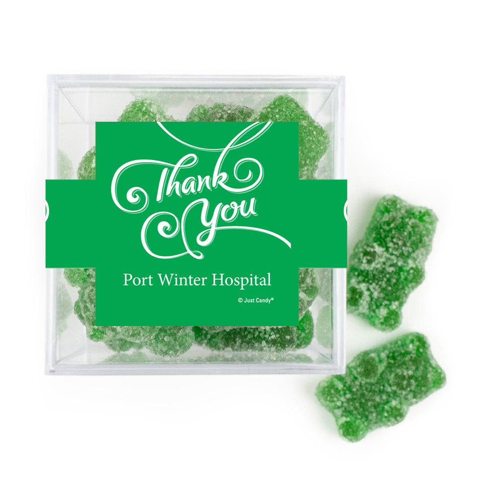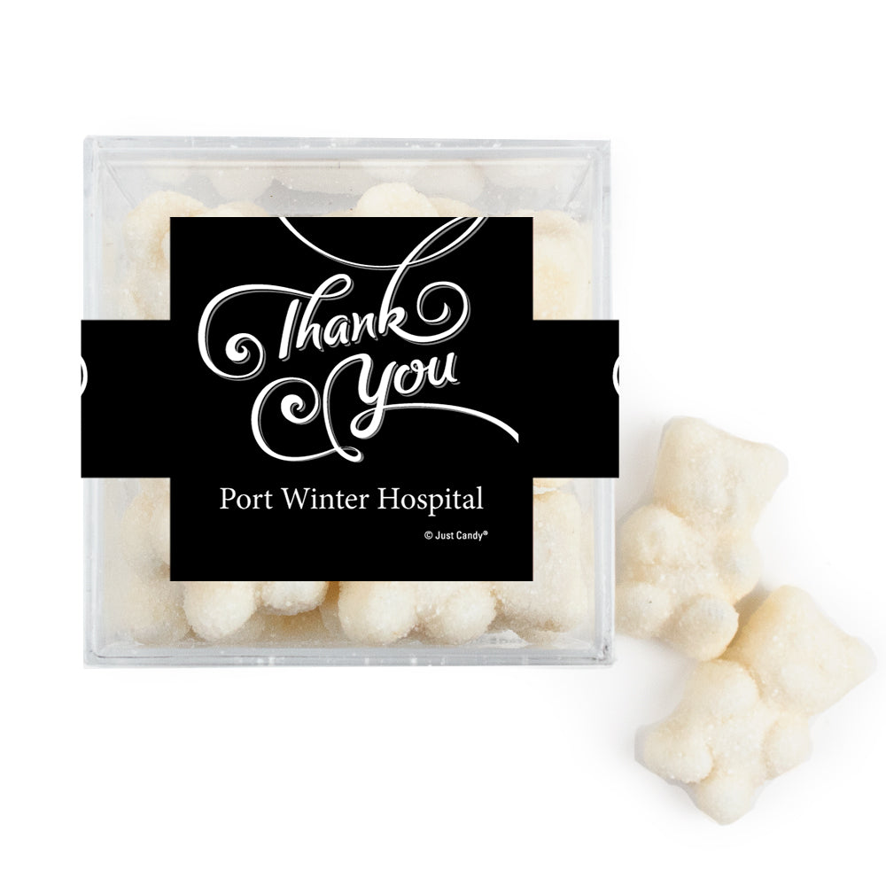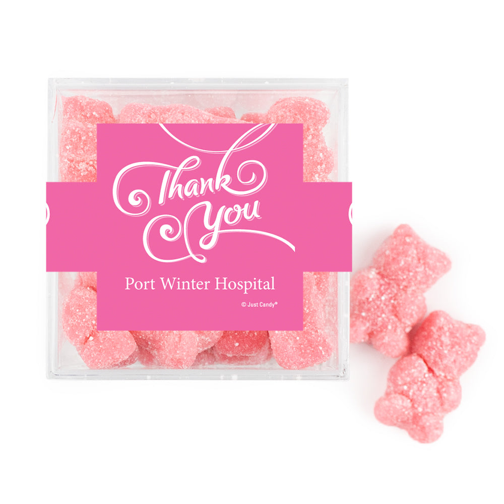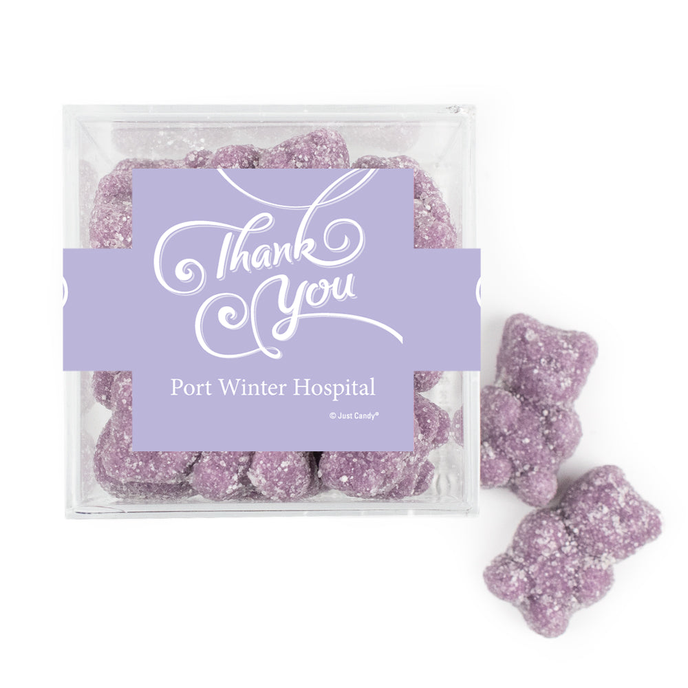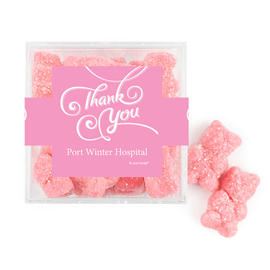 Personalized Thank You Swirls JUST CANDY® favor cube with Sugar Sanded Gummy Bears