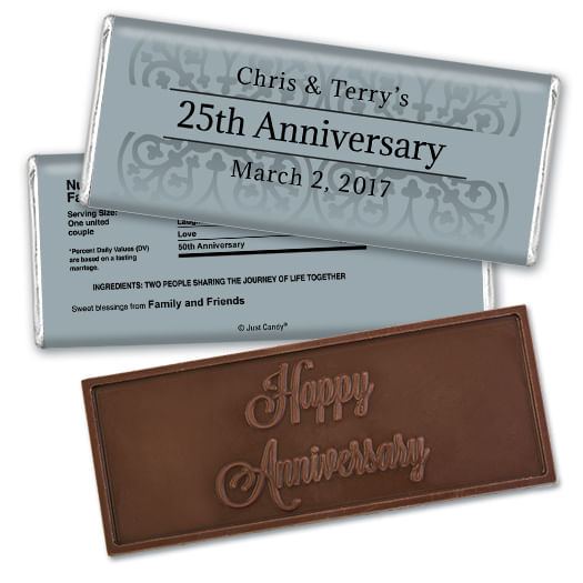 Anniversary Personalized Embossed Chocolate Bar 25th Fleur de Lis Gilded