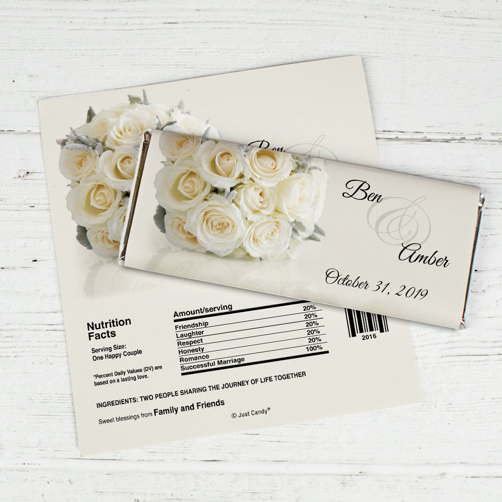 Wedding Favor Personalized Chocolate Bar Wrappers White Roses Bouquet