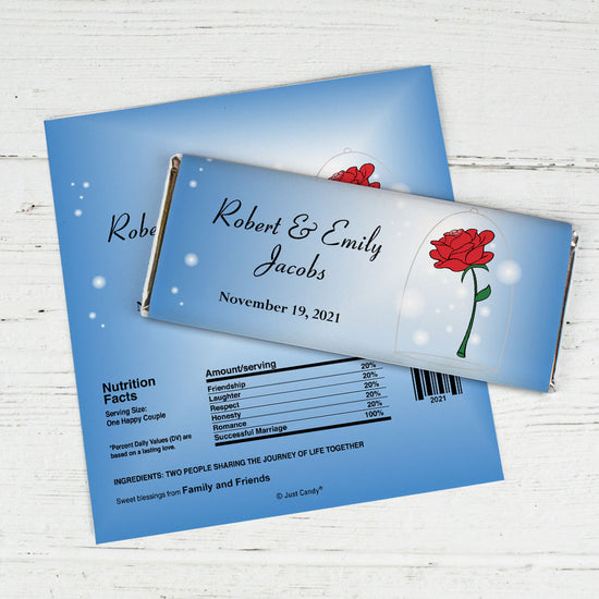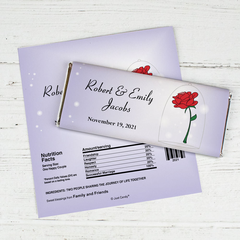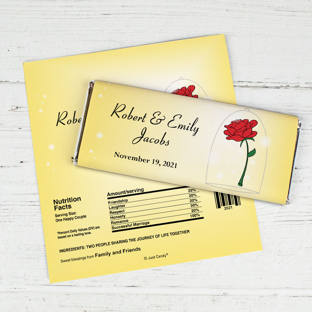 Wedding Favor Personalized Chocolate Bar Wrappers Beauty and Beast Rose