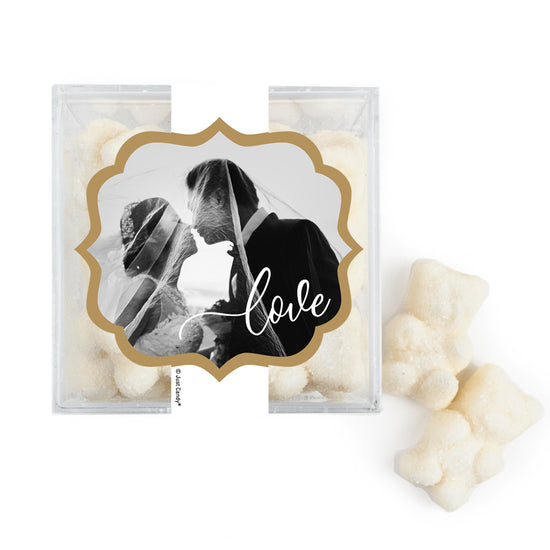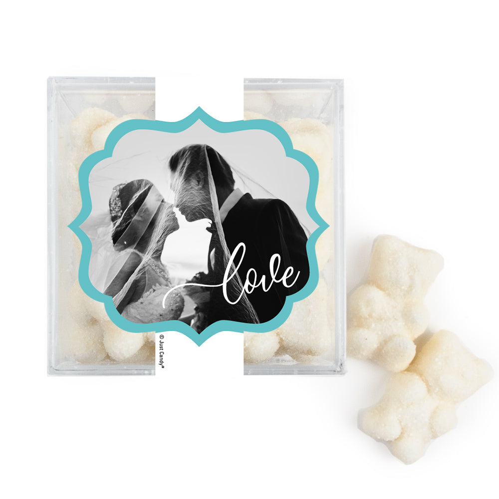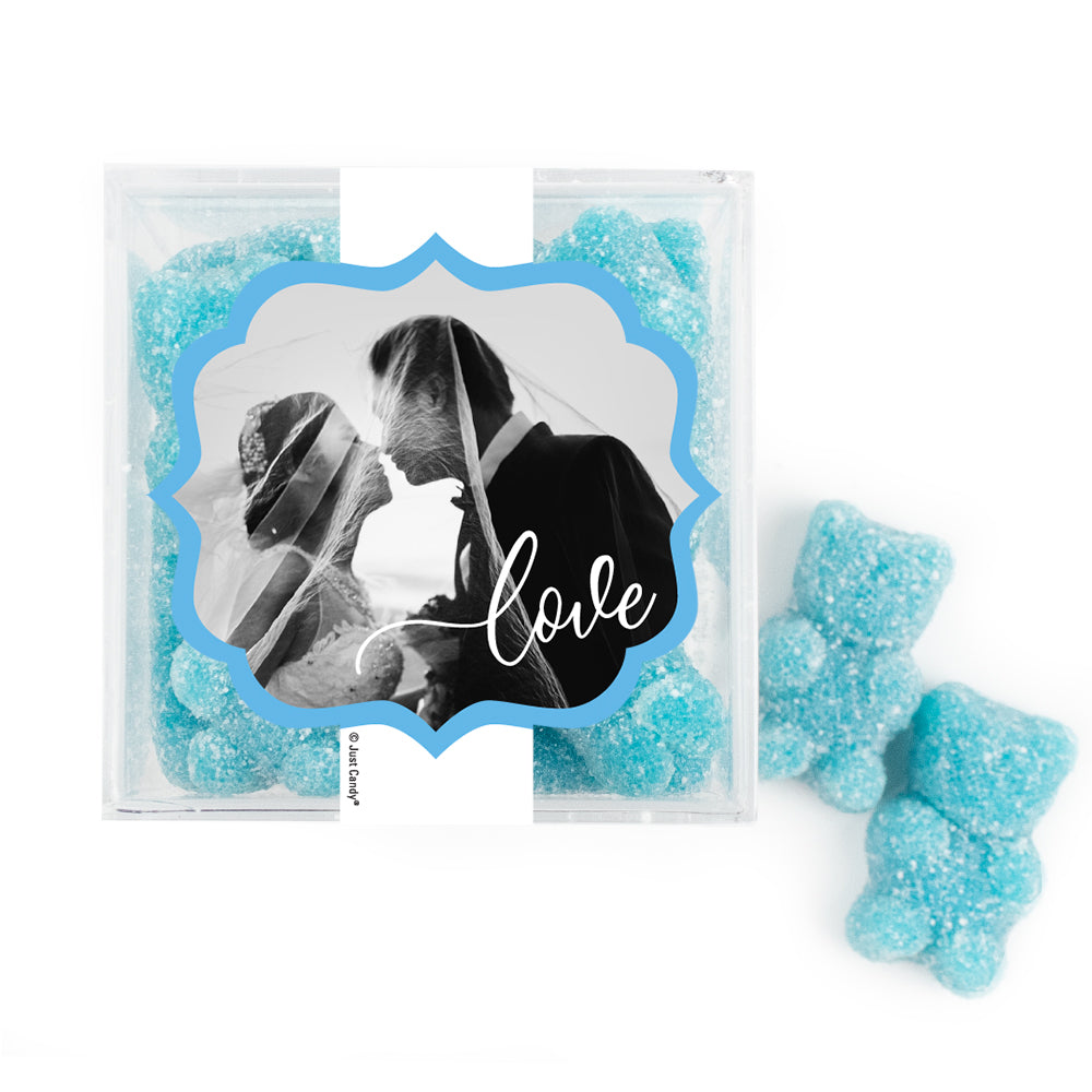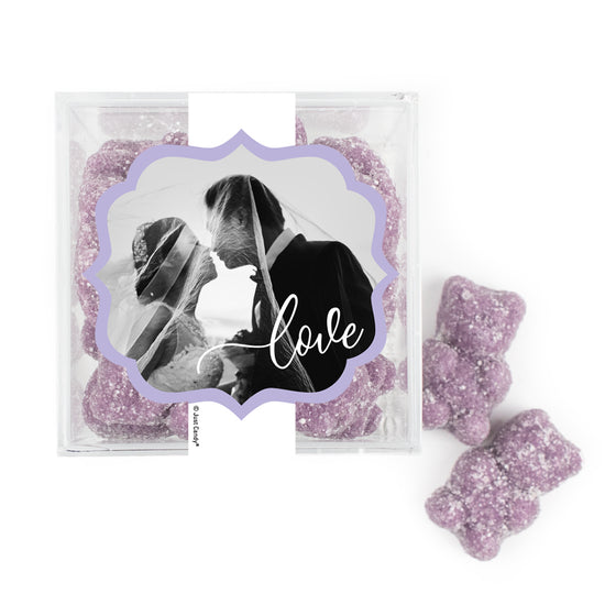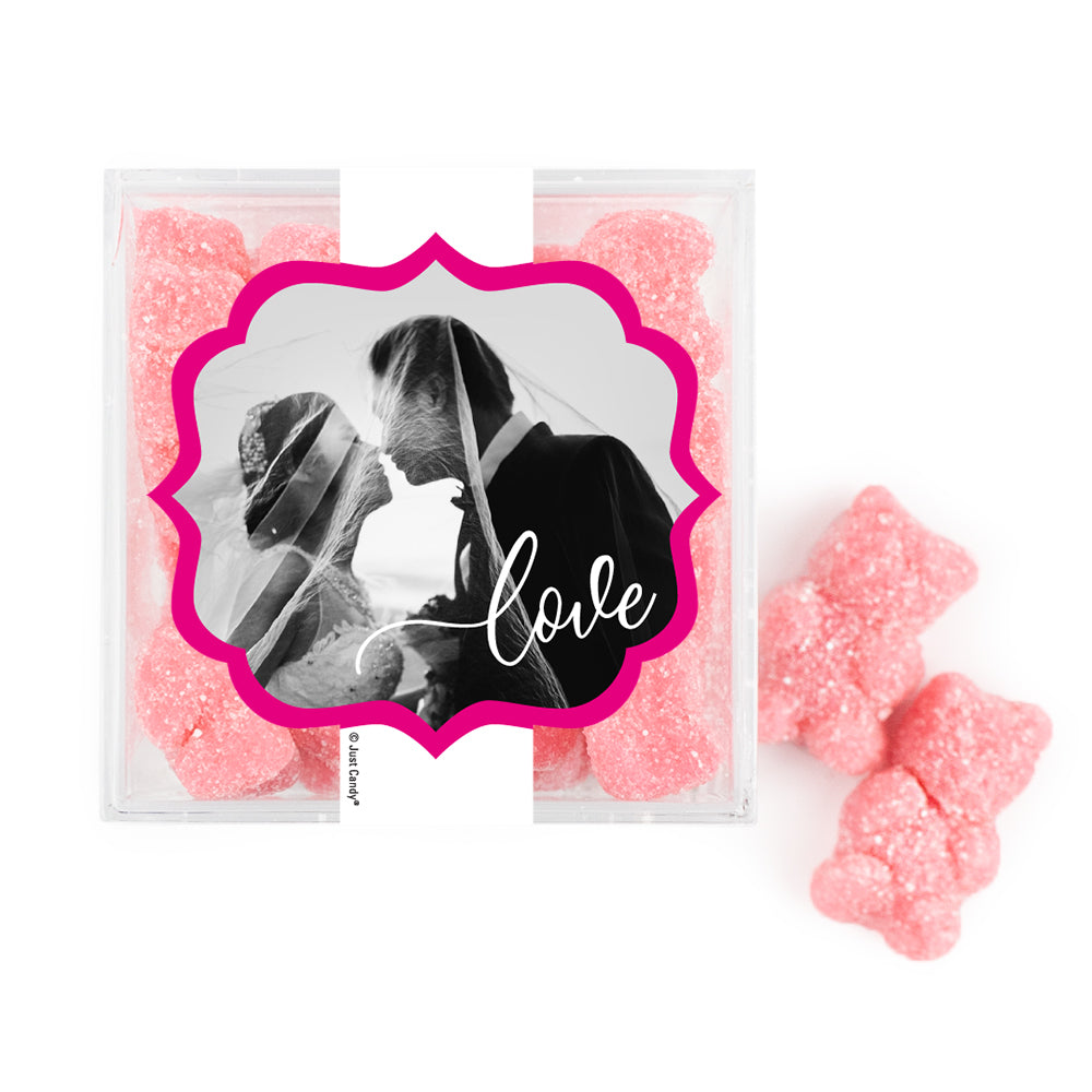 Personalized Wedding Photo Love JUST CANDY® favor cube with Sugar Sanded Gummy Bears