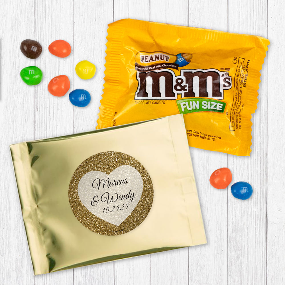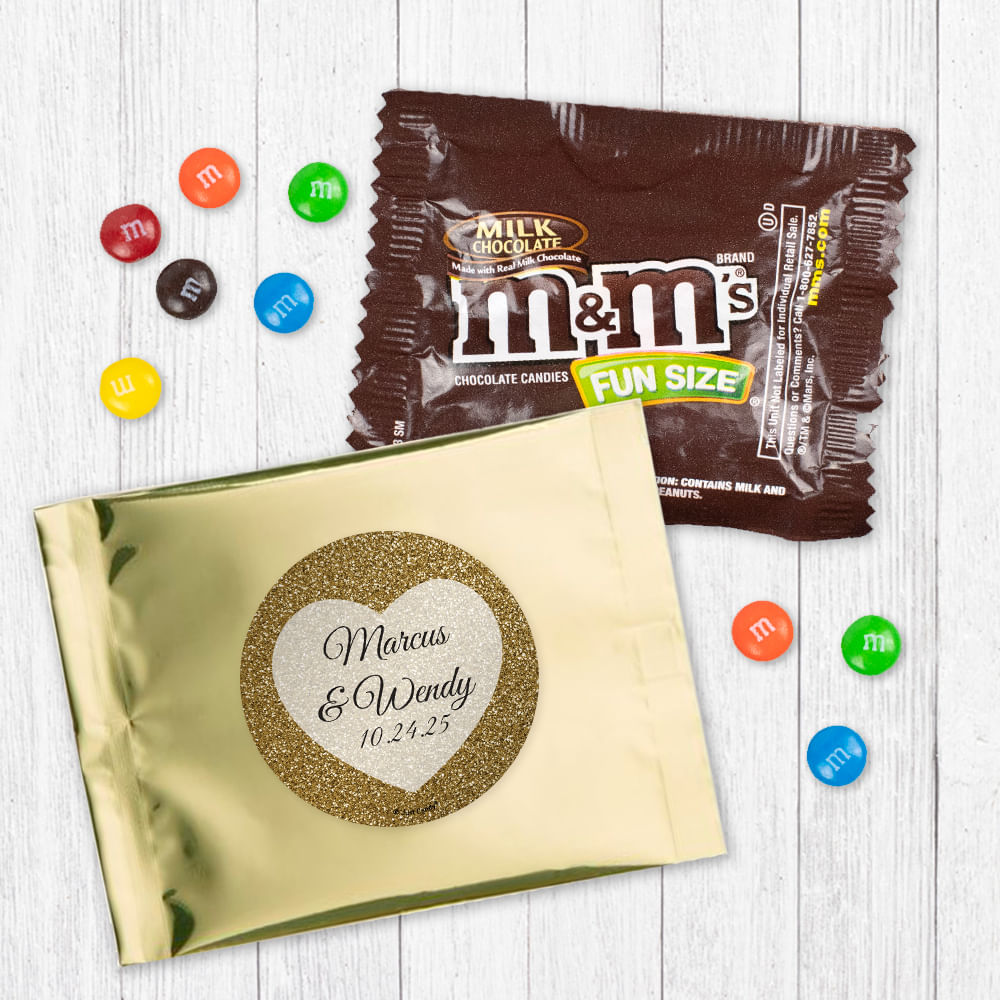 Personalized Wedding Sparlking Heart Candy Favor Bag - M&Ms or Skittles