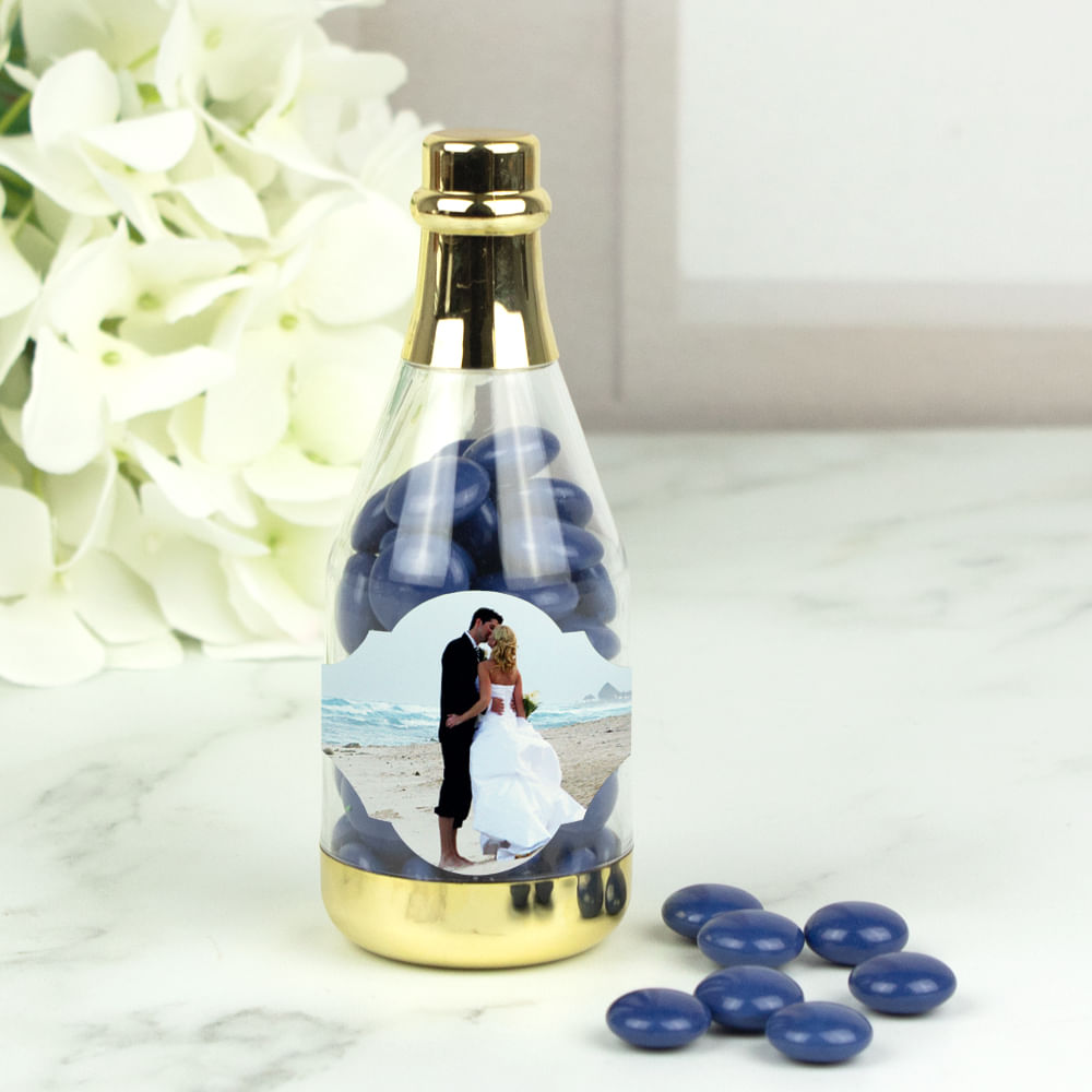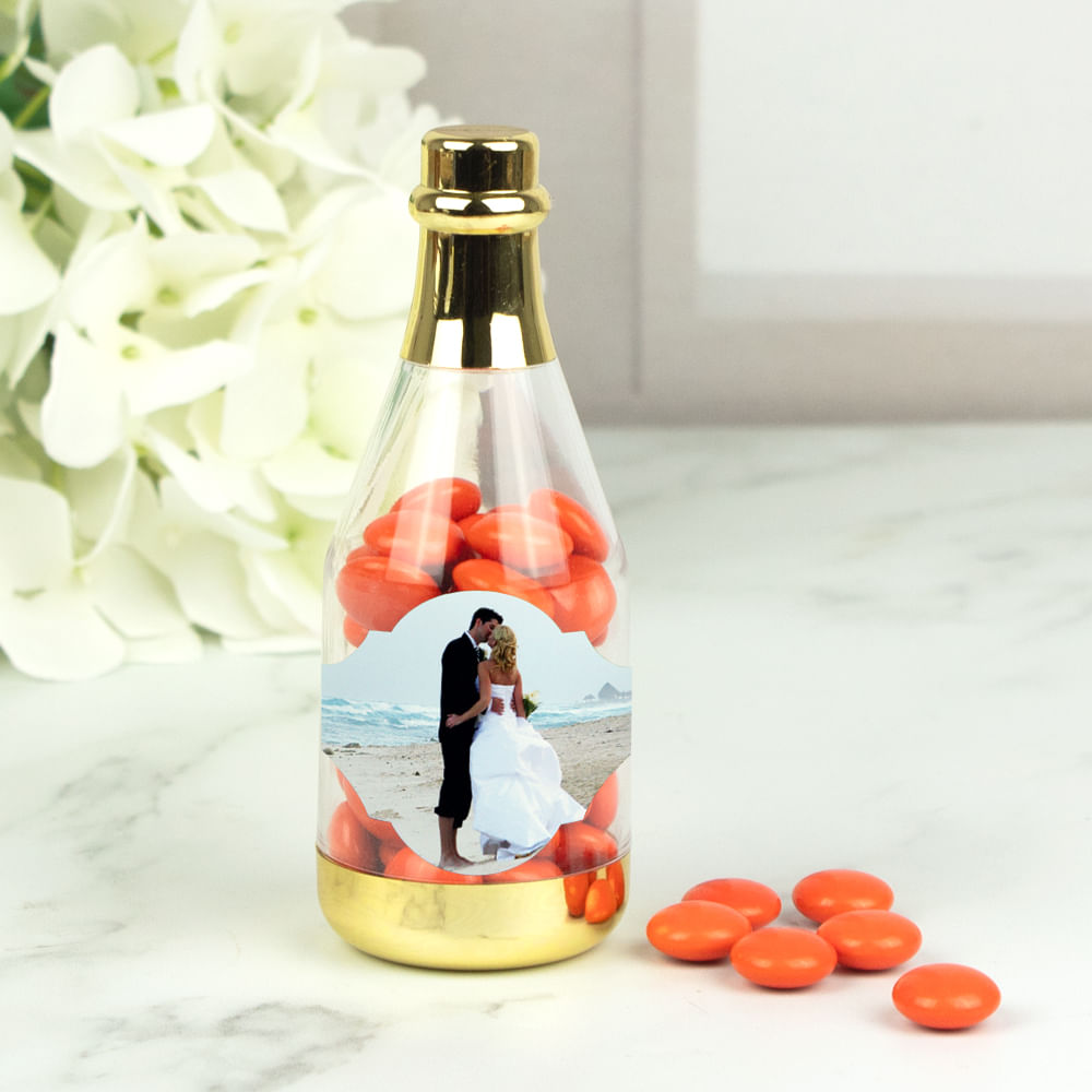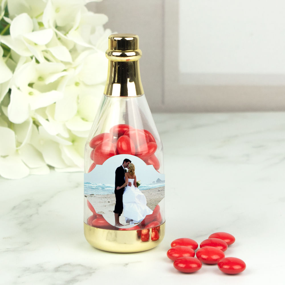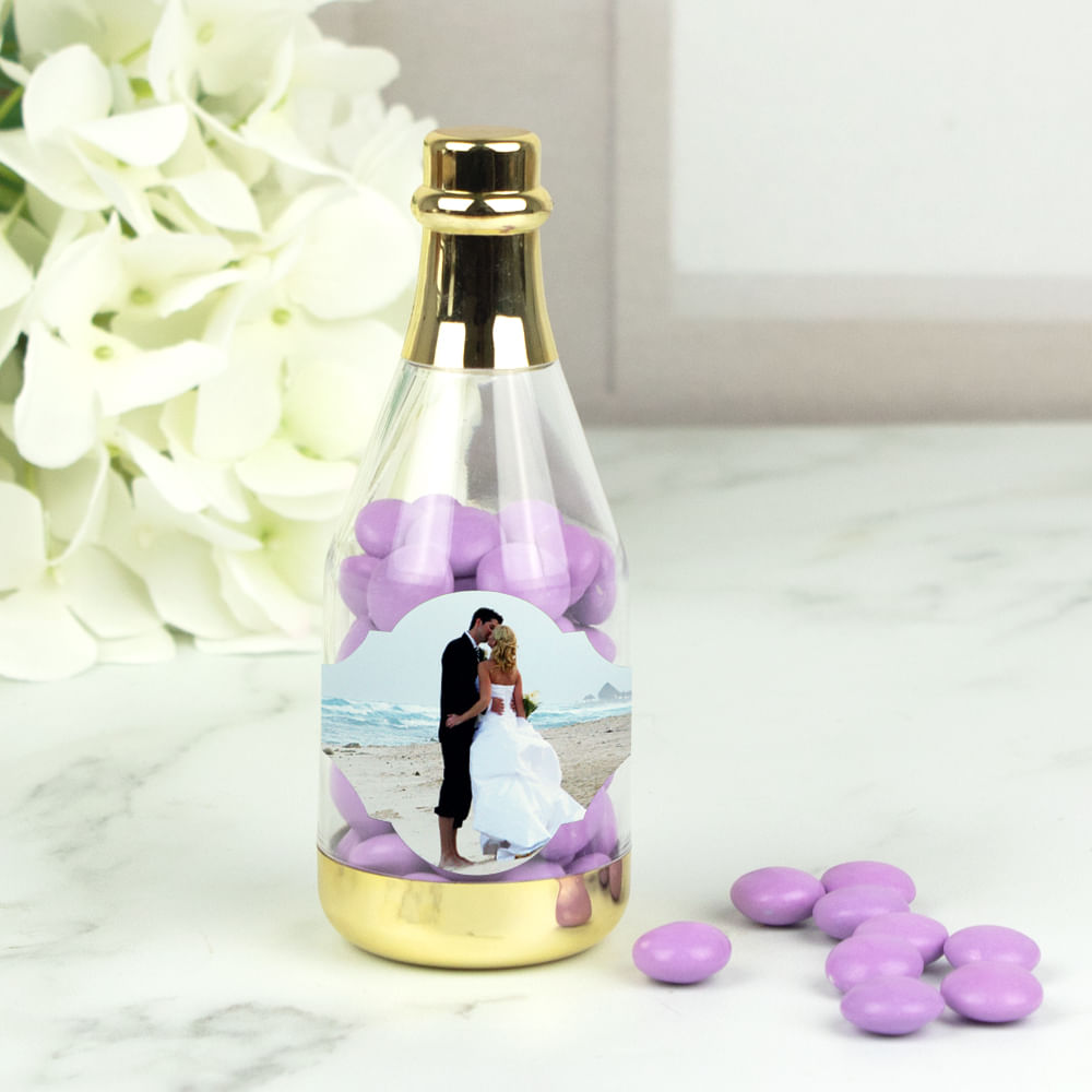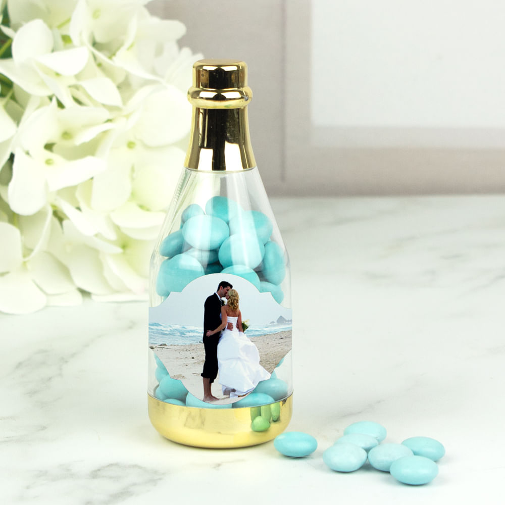Personalized Wedding Photo Champagne Bottle with Just Candy Chocolate Minis