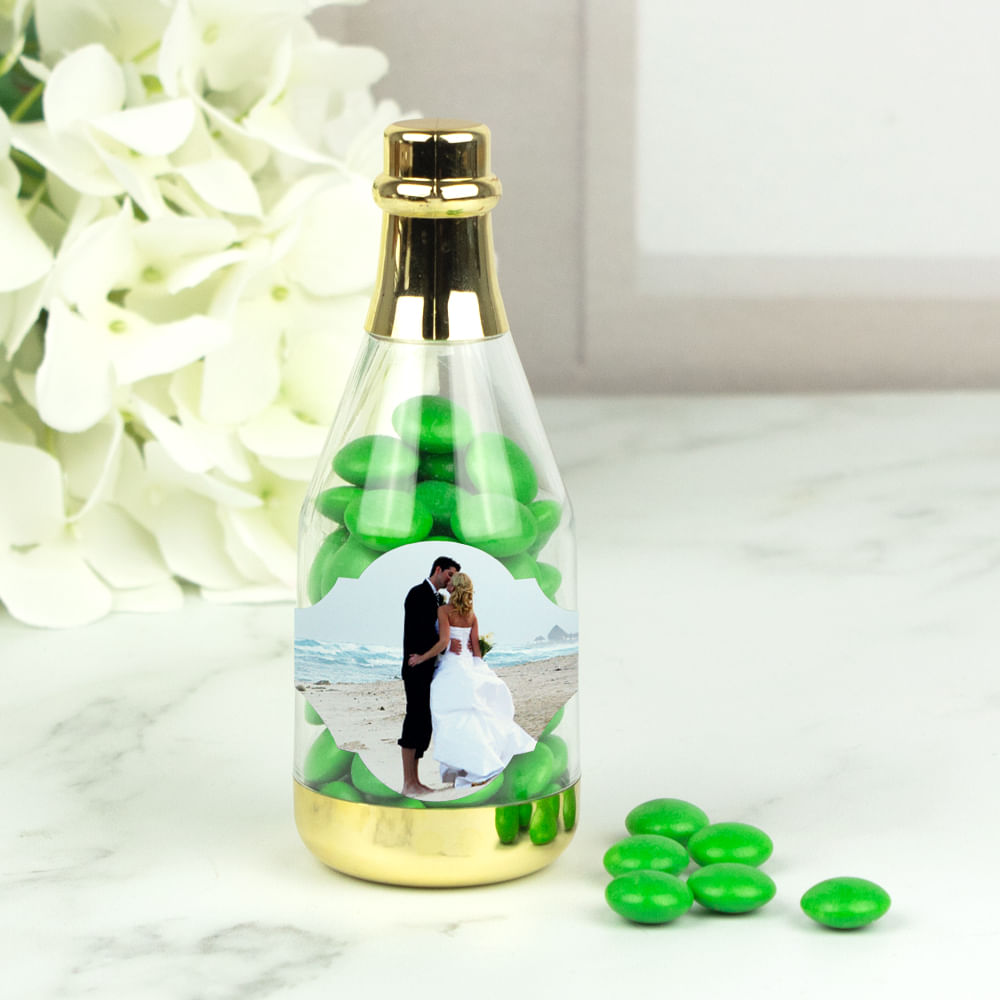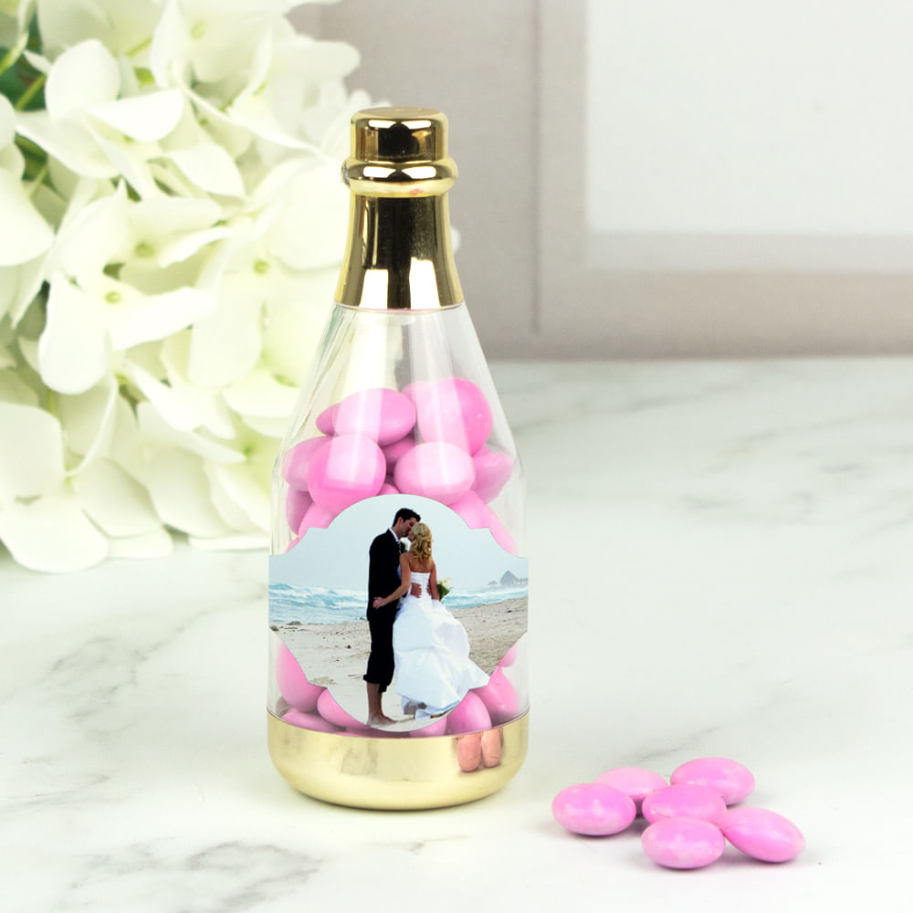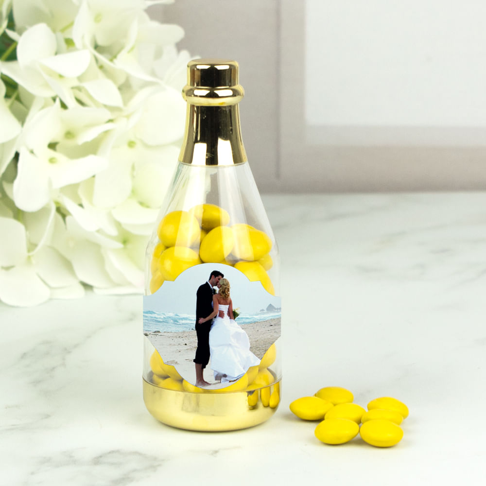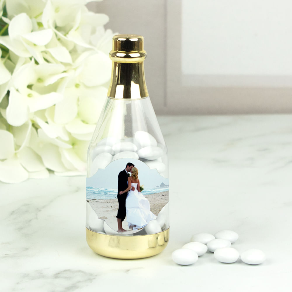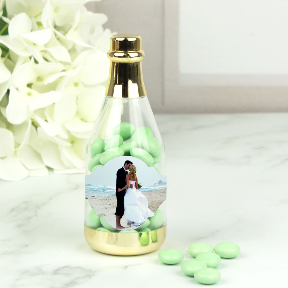 Personalized Wedding Photo Champagne Bottle with Just Candy Chocolate Minis