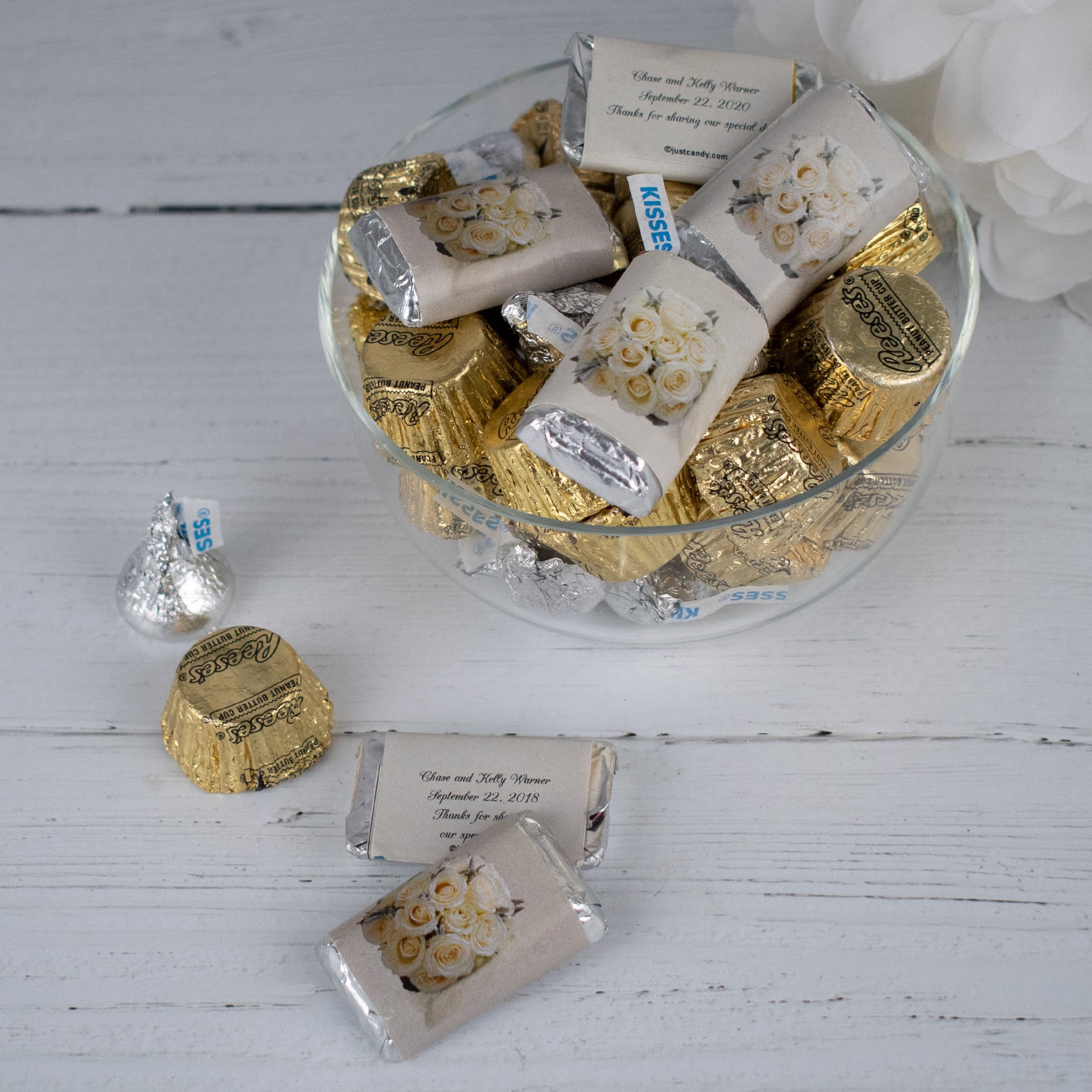 Wedding Flowers Mix Hershey's Miniatures, Kisses and Reese's Peanut Butter Cups