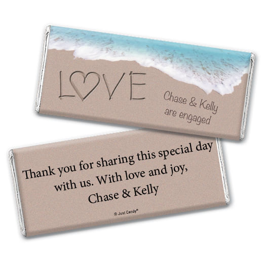 Engagement Party Personalized Chocolate Bar Wrappers Sand Writing Love by the Sea