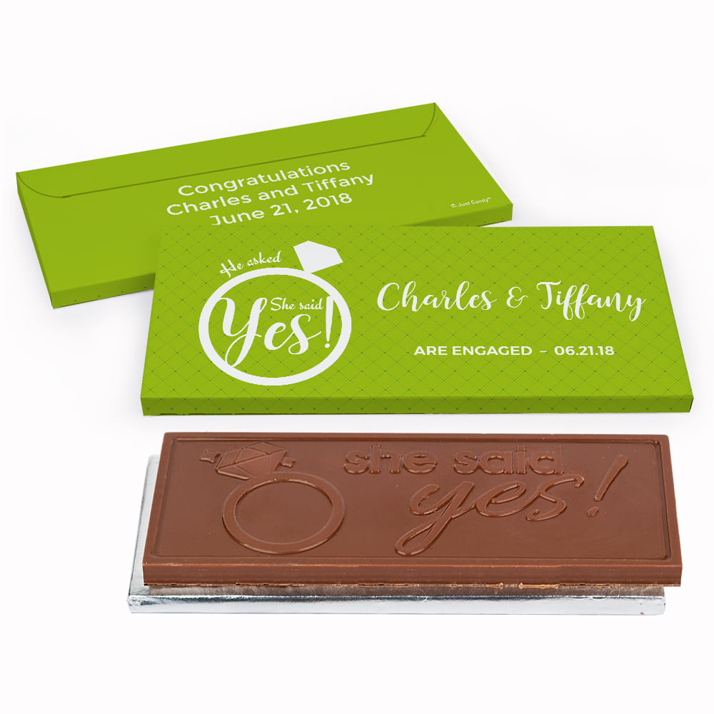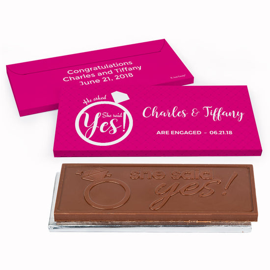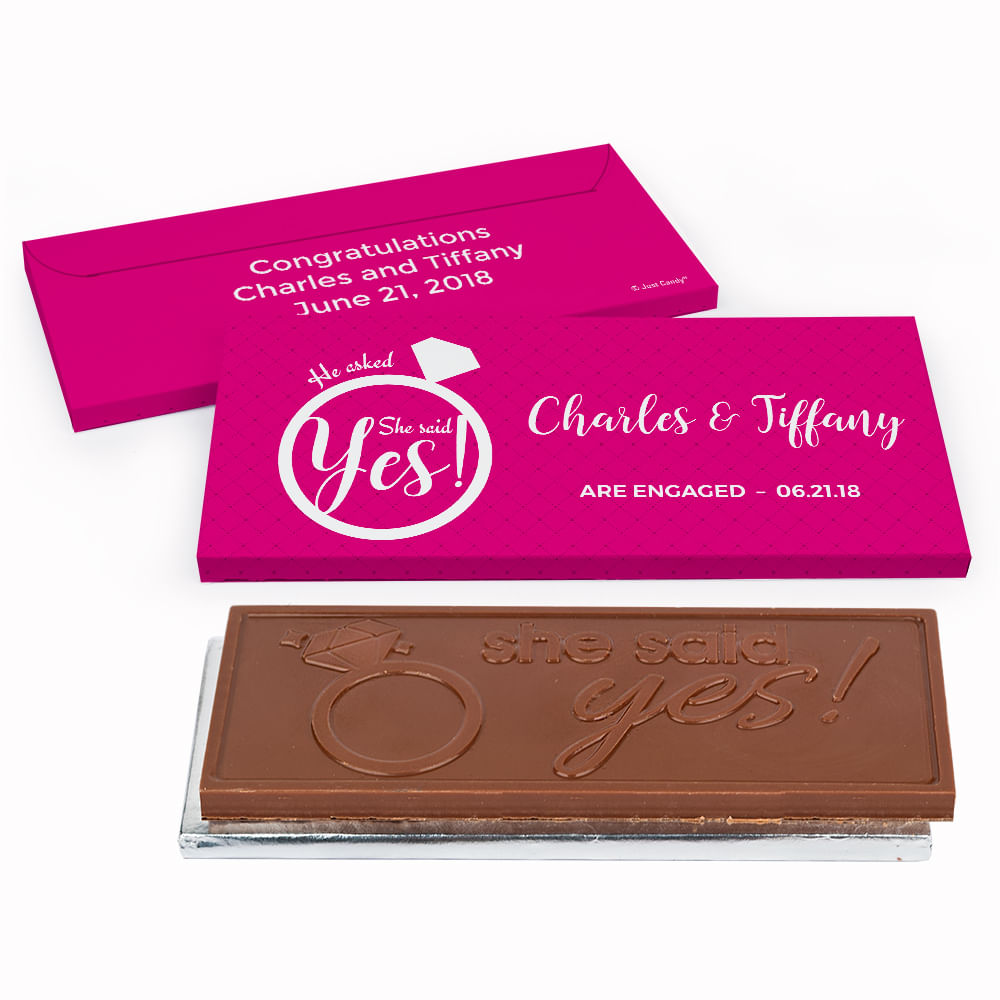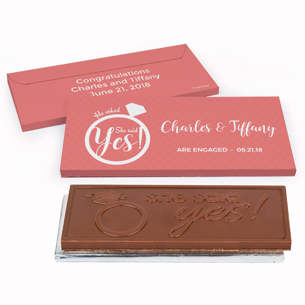 Deluxe Personalized Engagement She Said Yes! Ring Chocolate Bar in Gift Box