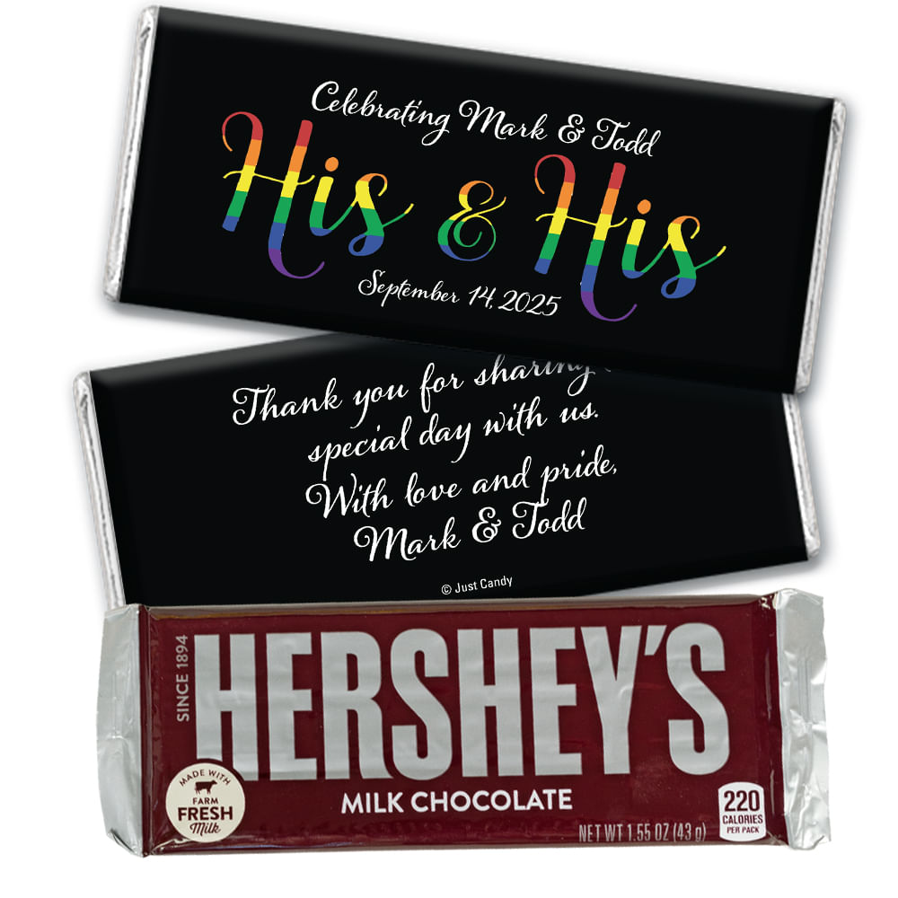 Personalized Gay Wedding His & His Rainbow Hershey's Milk Chocolate Bar & Wrapper