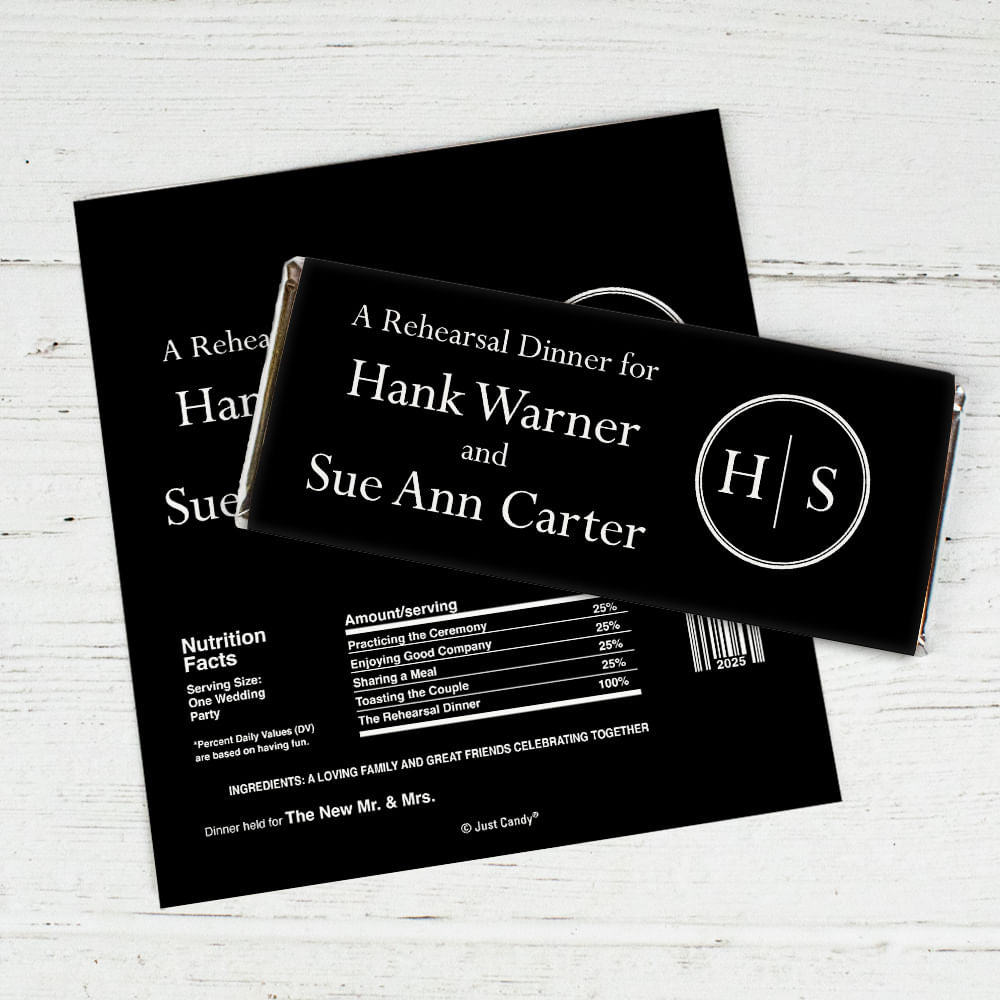 Rehearsal Dinner Personalized Chocolate Bar Wrappers Monograms
