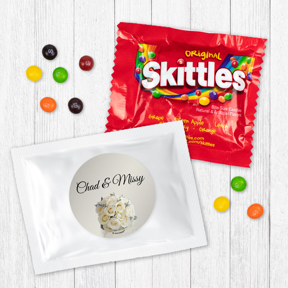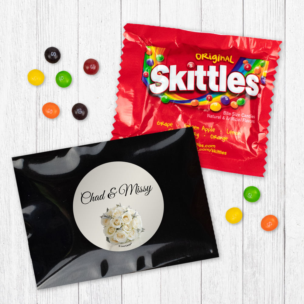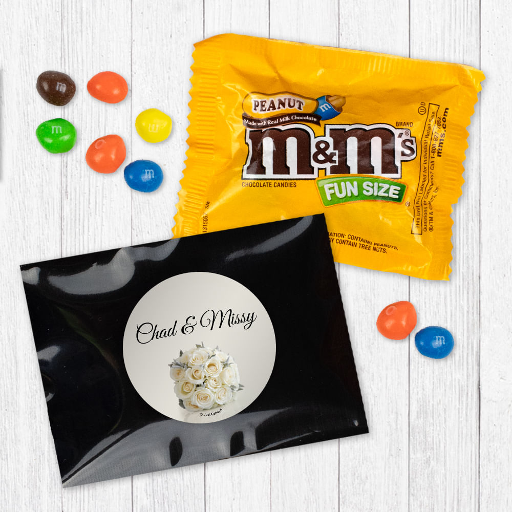Personalized Wedding Rehearsal Dinner White Roses Candy Favor Bag - M&Ms or Skittles