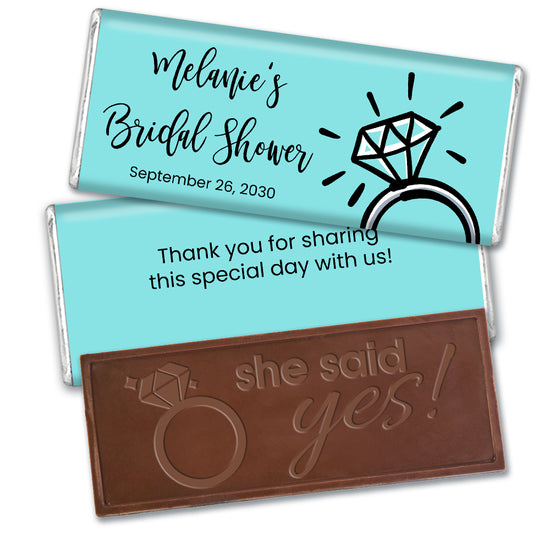 Bridal Shower Favor Personalized Embossed She Said Yes Chocolate Bar Wedding Bling
