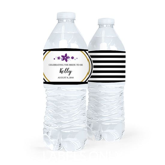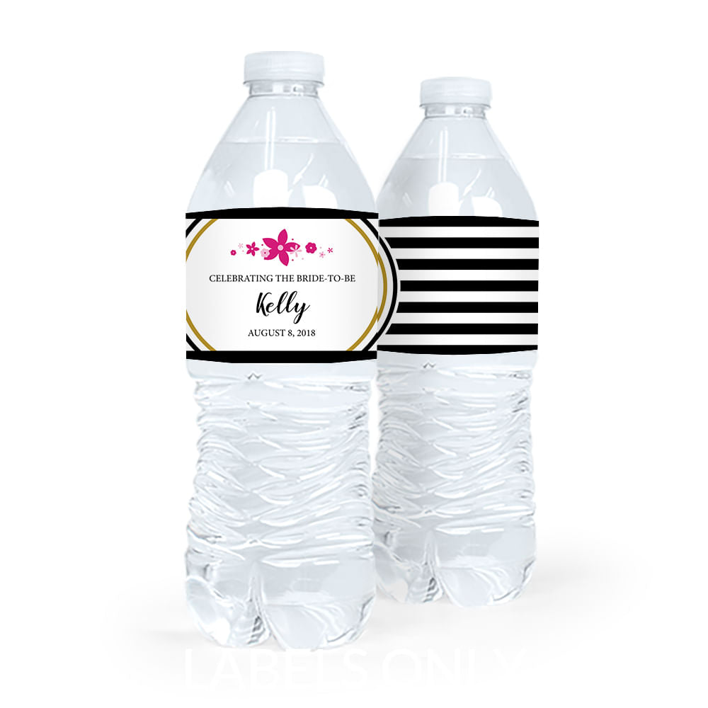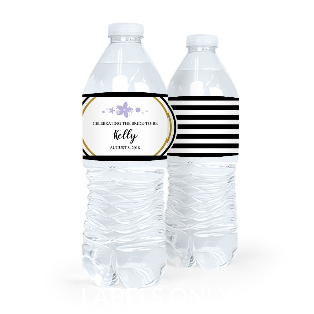 Personalized Bridal Shower Floral Stripes Water Bottle Labels (5 Labels)
