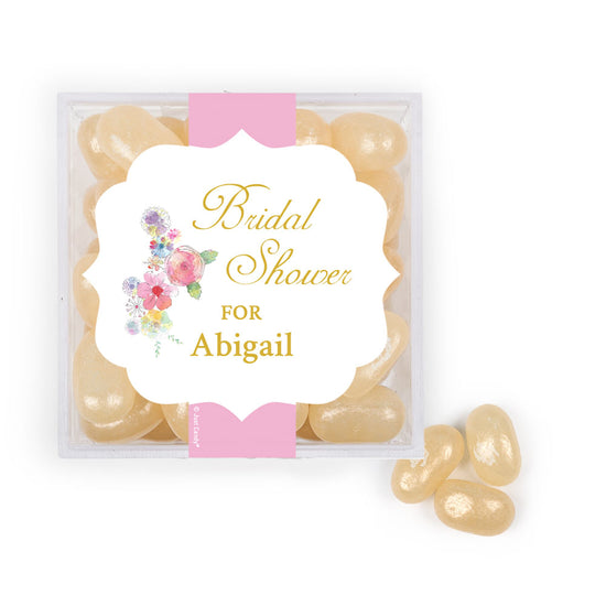 Personalized Bridal Shower Pastel Pink Florals JUST CANDY® favor cube with Jelly Belly Jelly Beans