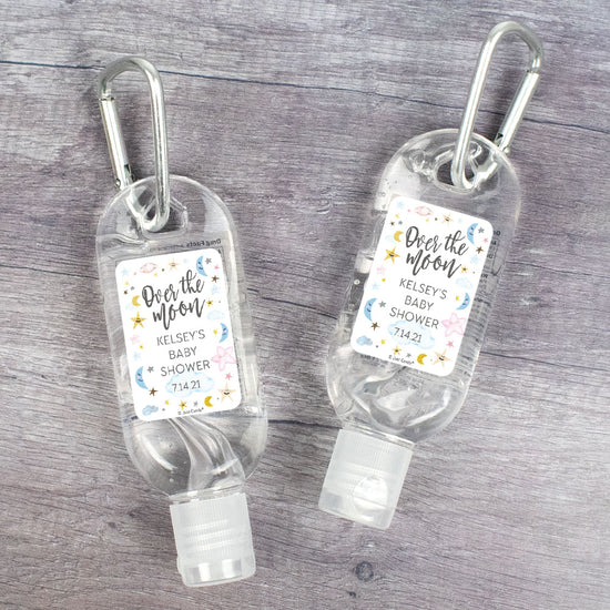 Personalized Baby Shower Over the Moon Hand Sanitizer with Carabiner 1. fl. Oz.